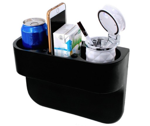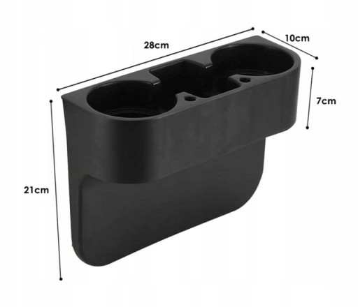Uchwyt na kubki jest łatwy w zamontowaniu między siedzeniami. Montaż jest niezwykle prosty. Po prostu wepchnij uchwyt między siedzenie i gotowe! Pasuje do większości typów samochodu. Posiada 5 otworów, dwa duże na kubki, puszki lub butelki. Pomiędzy znajduje się kieszonka na telefon lub inne małe drobne rzeczy np. monety. Posiada również dwa małe otwory na długopisy.