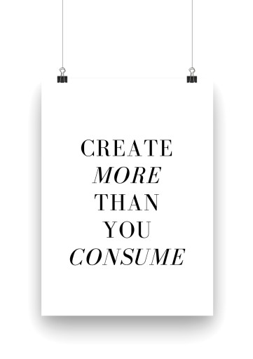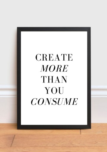 PLAKAT POSTER CZARNO-BIAŁY A3 CREATE MORE THAN YOU CONSUME 30x40 CM