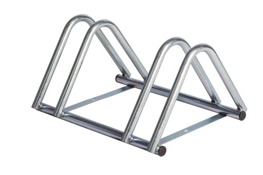 Spawany i ocynkowany stojak na 2 rowery, wykonany z rur górnych o średnicy 25 mm i rur podstawy o średnicy 28 mm.