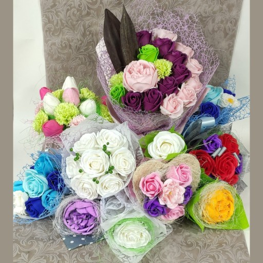 Kwiaty mydlane, które rozpuszczają się w wannie podczas odprężającej kąpieli to oryginalne i piękne prezenty dla osób, które cenią sobie nietypowe rozwiązania. Są to mydła w kształcie kwiatów, które nie tylko pięknie wyglądają, ale również pachną przyjemnie i mogą być używane do codziennej pielęgnacji ciała. To idealny wybór dla osób, które chcą podarować coś wyjątkowego i niebanalnego. Staramy się by kompozycje które powstają w naszej pracowni były urozmaicone pod względem kolorystycznym, miały różne kształty i rozmiary. Tak aby każdy mógł znaleźć coś w swoim guście i pasujące do okazji czy wnętrza. W naszej ofercie znajdują się również pojedyncze kwiaty, których można użyć jako dodatek do prezentu lub samodzielnego wykonania bukietu