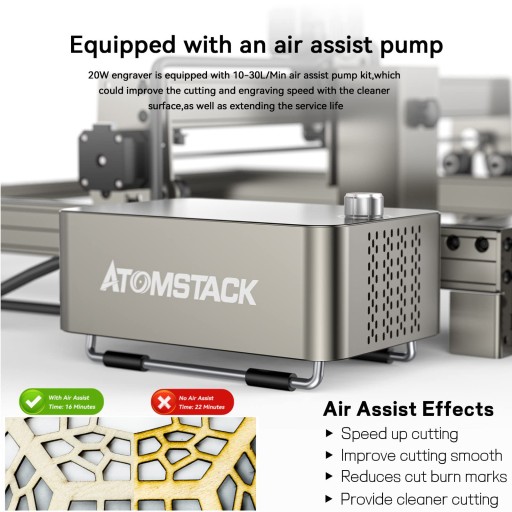 ✨CZYSTSZY GRAWEROWANIE: Grawer laserowy S20 PRO jest wyposażony w ulepszony profesjonalny zestaw wspomagania powietrza F30, który zawiera dwie wbudowane pompy wspomagania powietrzem. Dzięki temu jest dwukrotnie wydajniejszy od innych wspomagaczy powietrznych. Zestaw wspomagania powietrzem utrzymuje powierzchnie w czystości i radykalnie optymalizuje jakość grawerowania. Gruba aluminiowa osłona sprawia, że jest mocniejsza i wytrzymalsza, generuje mniej ciepła i starcza na dłużej.
