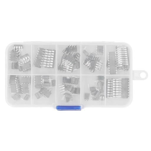 1. 10 specyfikacji: ten zestaw zawiera 10 specyfikacji układów scalonych, którymi są NE555, LM324, LM393, UA741, ULN2803, LM358, LM386, NE5532, ULN2003, PC817.