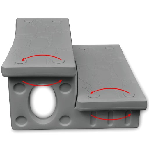 Schodki mają 2 odwracalne bieżniki z prostą i zakrzywioną krawędzią, co czyni je odpowiednimi do stosowania zarówno w przy płaskich ściankach, jak i okrągłych wanien z hydromasażem.