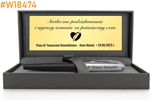 Wybrany wzór pudełka i dane do personalizacji tabliczki oraz pióra i długopisu podaj w wiadomości do sprzedającego.