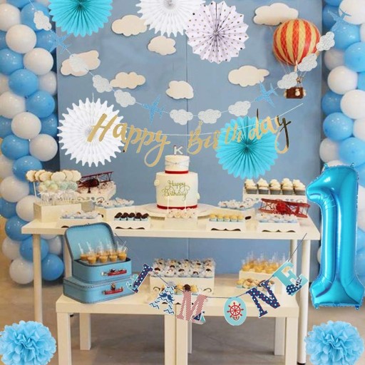 DEKORACJA NA PIERWSZE URODZINKI NIEBIESKA MIX