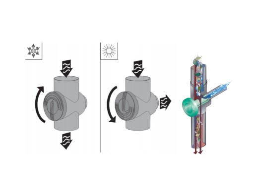 Filtr jest łatwy do czyszczenia - wystarczy go obrócić o 180 stopni i wyjąć, bez konieczności demontowania całej instalacji.