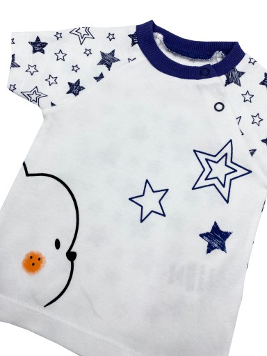 Koszulka posiada nadruk niebieskich gwiazdek oraz misia.