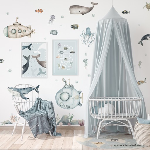 NAKLEJKI NA ŚCIANĘ DLA DZIECI OCEAN PODWODNY ŚWIAT, ROZMIAR L