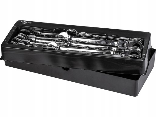 Wkład zawiera zestaw 10 kluczy płasko-oczkowych z łamaną grzechotką. Klucze zostały wykonane ze stali chromowo- wadanowej, dzięki czemu są bardzo wytrzymałe.