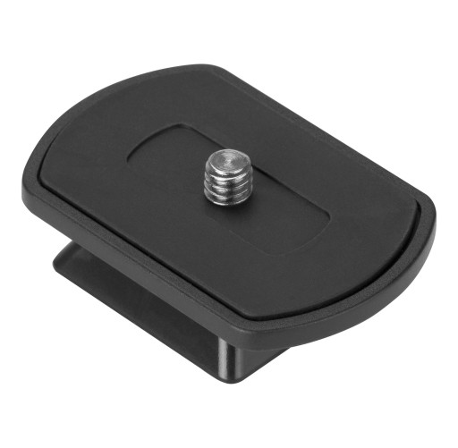 Szybkozłączka została wyposażona w standardową śrubę montażową 1/4”. Na jej szczycie znajdziesz wygodny uchwyt do dokręcania. Pozwala on na prosty i solidny montaż aparatu, kamery lub innych akcesoriów na płytce, bez konieczności sięgania po klucz lub monetę.