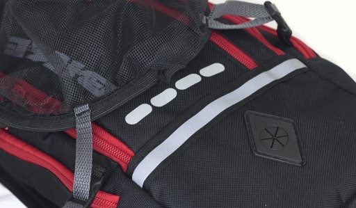 Plecak został wyposażony w regulowany pas piersiowy na zatrzaski, profilowane szelki oraz delikatnie usztywnione plecy.