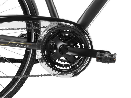 Kompletny rower, któremu niczego nie brakuje. Sprzęt wyjątkowo uniweralny i komfortowy, który dzięki wysokiej jakości wykonania z pewnością posłuży przez lata. Amortyzator przedni zapewnia płynną pracę na nierównych odcinkach, a regulowany mostek jest gwarancją łatwości dopasowania wygodnej pozycji za kierownicą. Napęd Shimano Acera 3x7 cechuje trwałość i szeroki zakres przełożeń. Bezpieczeństwo jazdy jest zawsze najważniejszą kwestią dlatego model wyposażyliśmy w hamulce tarczowe działające niezależnie od warunków pogodowych. Uzupełnieniem specyfikacji jest bogata lista dodatków pomocnych w codziennej eksploatacji. Bagażnik, komplet błotników oraz oświetlenie przednie i tylne przydadzą się nie tylko przy planowaniu długiej podróży. Model występuje w dwóch kolorach i trzech wariantach rozmiarowych.