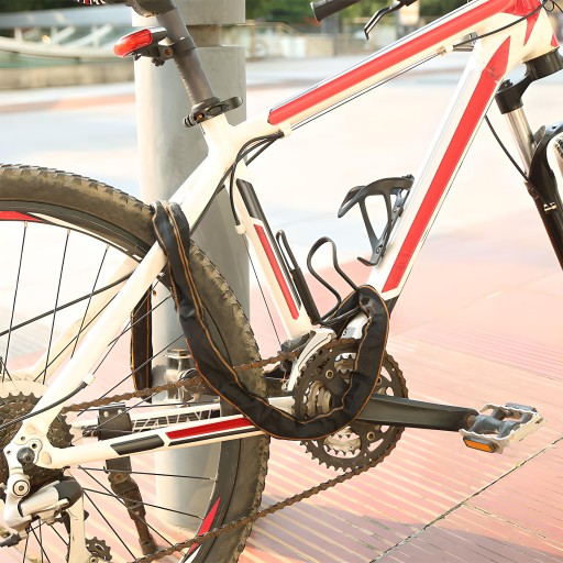 Zabezpieczenie do roweru wykonany jest z łancucha, który opleciony jest nylonem. Oplot zabezpiecza rower przed obtarciami z łańcucha. Łańcuch jest solidny oraz odporny na próby podważenia.