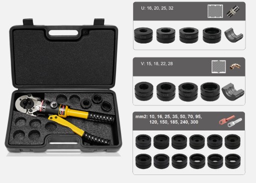 - Rozmiary kamieni w zestawie: U16, U20, U25, U32mm, V15mm, V18mm, V22mm, V28mm, 10, 16, 25, 35, 50, 70, 95, 120, 150, 185, 240, 300 mm2