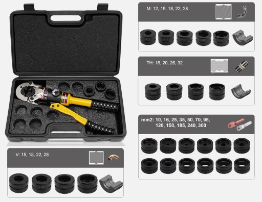 - Matryce sześciokątne w rozmiarach: 10, 16, 25, 35, 50, 70, 95, 120, 150, 185, 240, 300 mm2