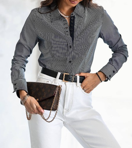 Biało-granatowa koszula body Melodi to wyjątkowy produkt, który został stworzony z myślą o młodym pokoleniu kobiet. Wykonana z wysokiej jakości materiału i starannie uszyta, ta koszula zachwyci Cię swoją jakością oraz niską ceną. Została zaprojektowana w pionowe pasy, które dodają jej elegancji i stylu. Koszula posiada guziki, co umożliwia łatwe zakładanie i zdejmowanie. Jest to idealny wybór dla kobiet, które cenią sobie komfort oraz modny wygląd. Ta biało-granatowa koszula body będzie doskonałą opcją na wiele okazji - zarówno do pracy, jak i na spotkanie ze znajomymi. Wybierz ją już dziś i poczuj się wyjątkowo!