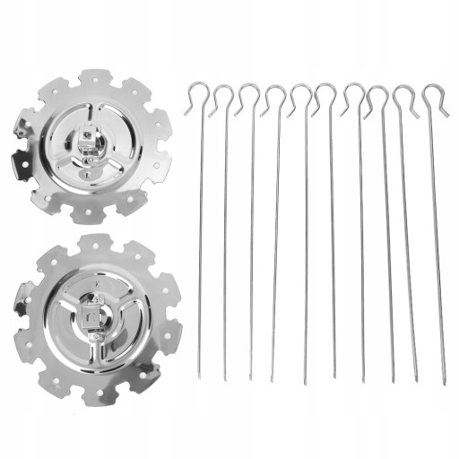 1. Składa się z 2 stałych talerzy i 10 patyczków do pieczenia, bez obracającego się pręta i śrub mocujących, nadaje się do uniwersalnego zastosowania w piekarniku.