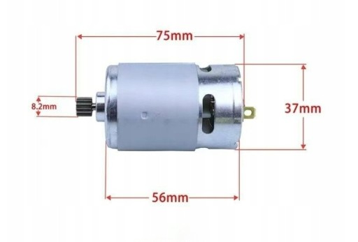 Opis produktu: Cechy: -Materiał stal nierdzewna, dokładny kształt, miedziany rdzeń. -Wykonane z doskonałej wydajności rozpraszania ciepła, niskiego prądu, wysokiej wydajności i stabilnej pracy. -Cewka z czystej miedzi, silnik o dużej mocy. -Nadaje się do piły elektrycznej, elektrycznej piły łańcuchowej, piły tłokowej, akumulatorowej piły ręcznej itp. Długość silnika: 75,1 mm Średnica silnika: 37,2 mm Długość wału silnika: 12mm Średnica wału silnika: 3,2 mm Średnica przekładni silnika: 8,2 mm Grubość przekładni silnika: 6,8 mm Rozstaw otworów montażowych silnika: 25mm