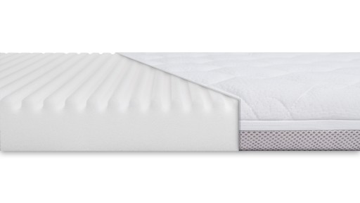 1. Profil fali wycięty na piance z jednej strony materaca zmiękcza go do twardości H2 (średniotwardy) i poprawia wentylację.