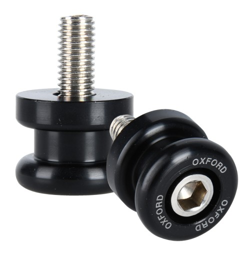 Rolki wahacza marki OXFORD. Kolor czarny, gwint M6 1,00. Przed zamówieniem sprawdź czy rolki są właściwe do Twojego motocykla. Zmierz gwint otworu w wahaczu.