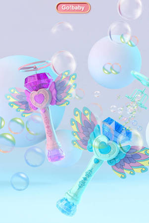 Różdżka posiada w zestawie 2 wiatraczki, które wpinane są do różdżki i po przyciśnięciu elementu serca, wiatraki nabierają prędkości i są wystrzeliwane w górę na kilka metrów, tworząc przy tym ogromne ilości baniek. Różdżka zasilana jest akumulatorem, który dołączany jest w zestawie.