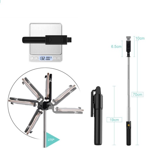 Dzięki składanej konstrukcji łatwo przejdziesz z zastosowania jako kijka selfie do opcji statywu. Ustawiając jako statyw zdjęcia wykonasz pilotem sparowanym z telefonem.