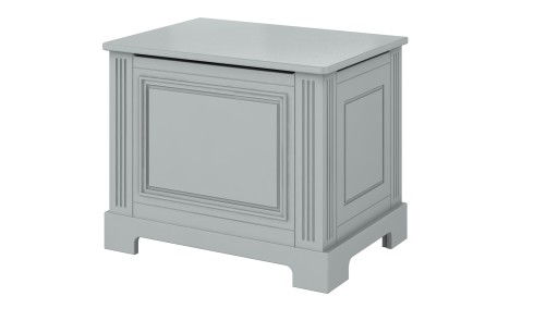 - Pojemna skrzynia pomieści wszystkie dziecięce zabawki, bądź akcesoria, np. pościele, ubranka. Skrzynia wyposażona jest w specjalne zawiasy, które spowalniają zamykanie wieka. Z przodu oraz w bocznych ściankach skrzyni zostały zastosowane specjalne otwory, które mają chronić dziecięce paluszki przed przytrzaśnięciem.
