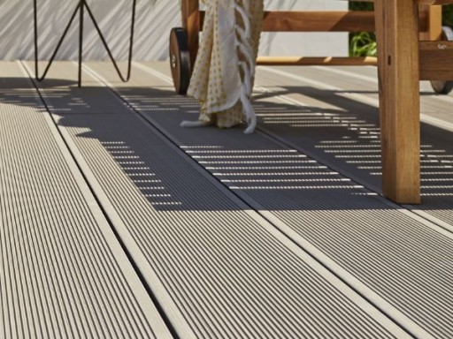 System ESSENTIAL XL zwraca uwagę nie tylko dlatego, że posiada najszerszą deskę, ale również inne ryflowanie niż w pozostałych systemach tarasowych Twinson. Wąskie, ale głębokie rowki powodują inne układanie się światła na desce i w efekcie uwypuklają ciekawą estetykę.