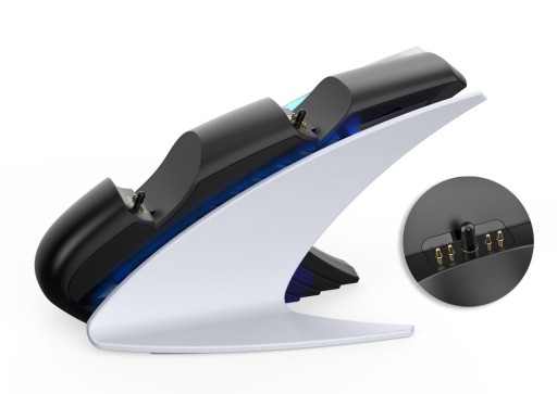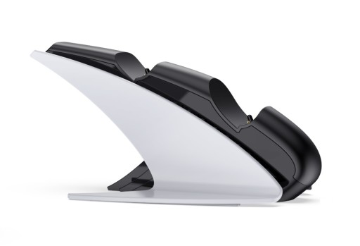 Stacja jest doskonale wyważona, dzięki czemu nie musisz się obawiać, że się przewróci bez względu na to czy podłączysz do niej jednego czy dwa pady. Kształt uchwytów jest doskonale dopasowany do kształtu pada DualSense, dzięki czemu będzie spoczywał on stabilnie na stacji. Na spodzie ładowarki znajdują się dwie, zakończone miękkim materiałem nóżki, dzięki czemu nie niszczą one powierzchni, na której stoją. Stylowy wygląd stacji doskonale komponuje się z designem konsoli.