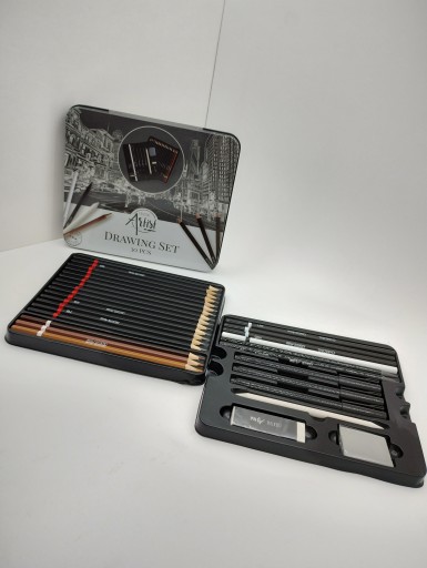NIEZSTĄPIONY , NIEZAWODNY ZESTAW AKCESORIÓW DO SZKICOWANIA I RYSUNKU. ZAPAKOWANY W TORBĘ Z UCHWYTEM I ZAMKIEM ABYŚ MÓGŁ GO ZABRAĆ WSZĘDZIE TAM GDZIE GO POTRZEBUJESZ.