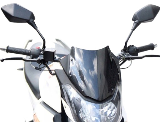 Uniwersalne lusterka motocyklowe w kolorze czarnym, kompatybilne z wieloma modelami motocykli ze względu na zastosowanie gwintu M10. Mają stylowy wygląd oraz wytrzymałą konstrukcję, a poprzez regulację kąta widzenia zapewniają optymalną widoczność na drodze. W zestawie komplet - 2 sztuki.