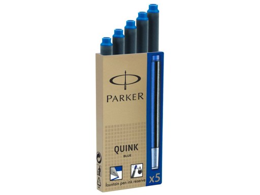 Naboje do pióra Parker standard długie. Kolor atramentu: niebieski. W opakowaniu znajduje się 5 szt. Pasują praktycznie do każdego pióra wiecznego marki Parker.