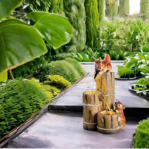 Светодиодный садовый фонтан из деревянной бочки с белкой
