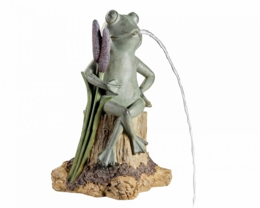 Зеленый фонтан-лягушка на стволе для садового пруда