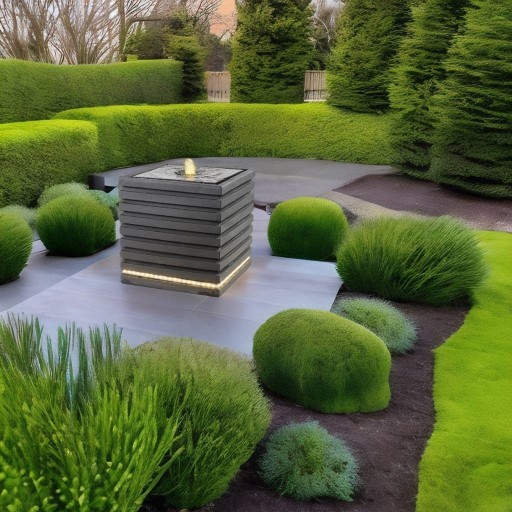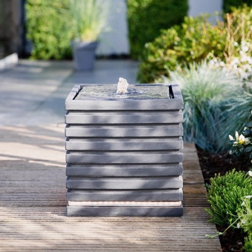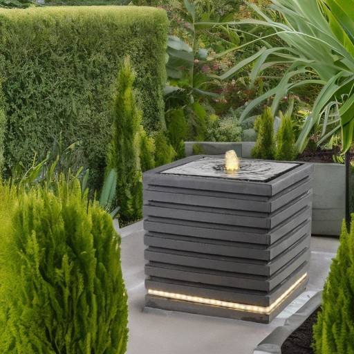 Квадратный ребристый садовый фонтан с черной светодиодной подсветкой