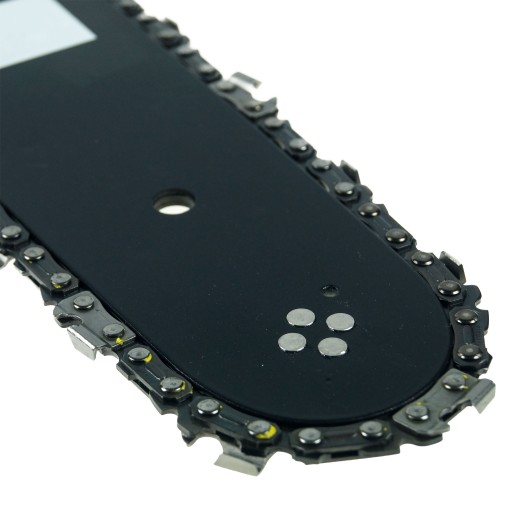 Prowadnica do piły wykonana jest z bardzo twardego materiału, odpornego na ścieranie i wysoką temperaturę, jaka powstaje w czasie pracy pilarką. Łańcuch tnący wykonany jest ze stali karbonowej, dzięki zastosowaniu nawęglania otrzymano powłokę odporną na ścieranie i tępienie przy zachowaniu plastycznego rdzenia ogniw, z tego powodu oferowany łańcuch jest mocniejsze i trwalsze w użytkowaniu. Budowa łańcucha powoduje ograniczenie wibracji na uchwytach pilarki.