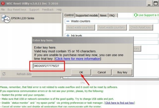 5. Wprowadź klucz resetowania ( Kup pełny klucz resetowania ) lub próbny klucz resetowania (wprowadź TRIAL).