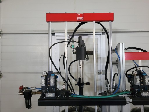 Solidny i modułowy zestaw tandem do dozowania smaru do podłączenia zarówno jako centralny układ lub bezpośrednio pod daną maszynę. Nadaje się do dozowania materiałów o niskiej i średniej lepkości.