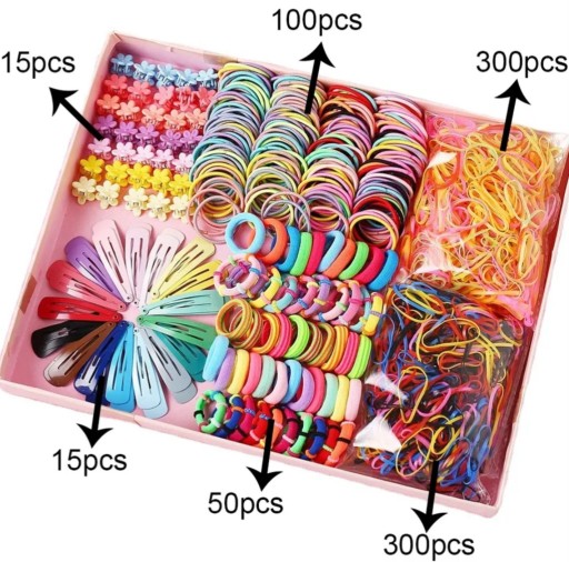 DUŻY ZESTAW GUMEK ORAZ SPINEK DO WŁOSÓW - ŁĄCZNIE 780sztuk!