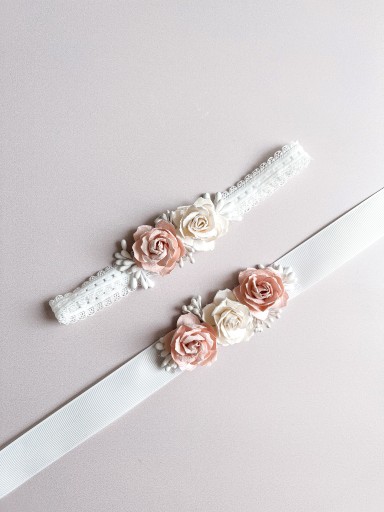 Zestaw Pasek i Opaska z Kwiatów Pastel Roses