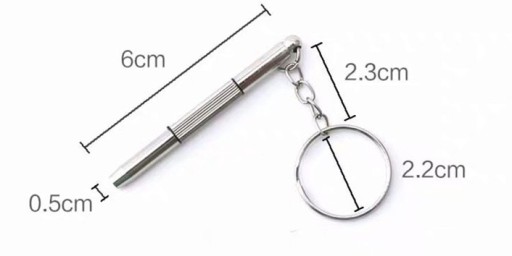Jest to breloczek funkcyjny, który doskonale posłuży jako śrubokręt do okularów, zegarka lub wszelkich innych małych śrub i nakrętek
