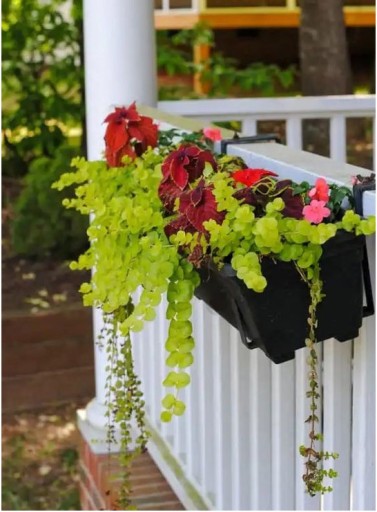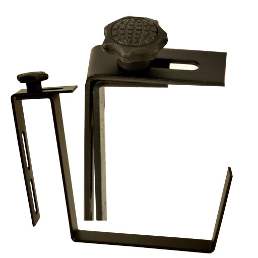 Metalowy uchwyt na skrzynkę balkonową malowany proszkowo na kolor czarny, biały, brązowy lub szary. Wieszak można regulować na odpowiednią szerokość barierki od 3-13 cm.