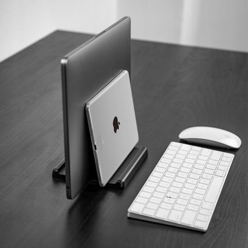 【 3 w 1 Design】Cradle jeden laptopa i telefon lub iPad pionowo w tym samym czasie. Uchwyt na laptopa świetnie nadaje się do oszczędzania miejsca i budowania schludnej i zorganizowanej przestrzeni na biurku.