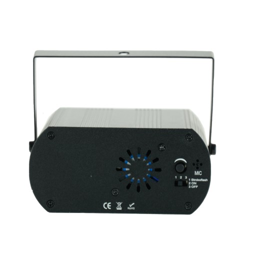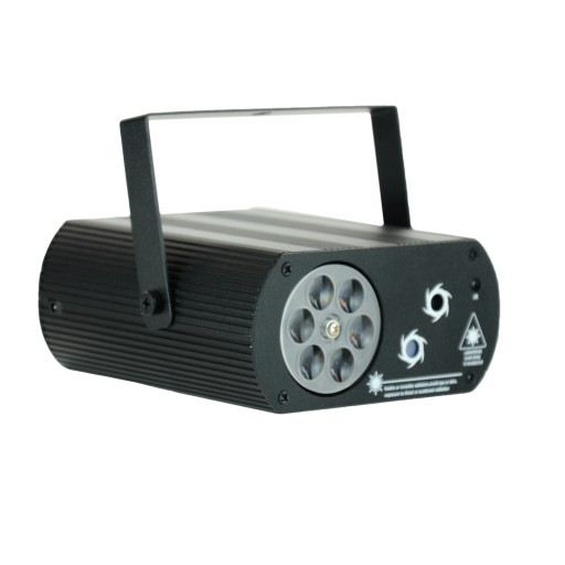 Dzięki któremu możemy tworzyć ciekawe pokazy świetlne. Urządzenie wyposażone zostało w 3 lasery –czerwony, zielony i niebieski oraz 16 efektów GOBO. Laser śnieżny wyświetla ruchome kropki i wzory.