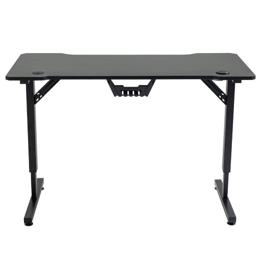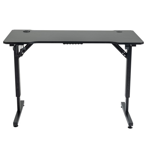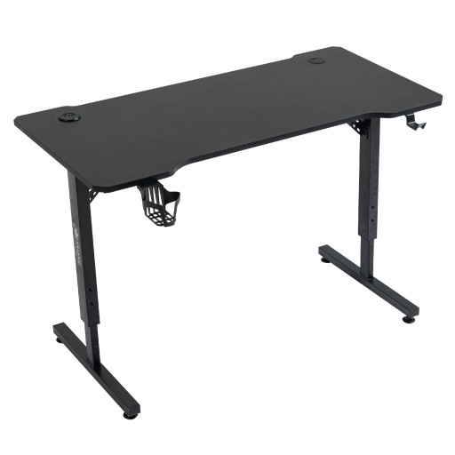 Regulowane nogi biurka pozwalają na dostosowanie jego wysokości do wzrostu użytkownika, co zapewnia poprawną postawę ciała podczas wielogodzinnej pracy lub rozrywki. Blat o wymiarach 120 x 60 centymetrów zapewnia odpowiednią powierzchnię do postawienia monitora, klawiatury oraz myszy, a także zapewnia wygodne miejsce do pracy. Konstrukcja ze stali gwarantuje stabilność, a uchwyty na napoje, słuchawki oraz listwę zasilającą ułatwiają utrzymanie porządku na biurku.