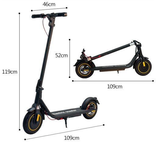 Dzięki systemowi zgłoszenia hulajnogę można łatwo złożyć w ciągu 1 sekundy i schować w bagażniku. Rozmiar położenia 110*48*52 cm