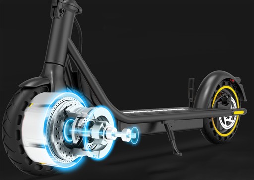 MAX jest wyposażony w silnik o mocy 500 W, który ułatwia pokonywanie wzniesień, a maksymalna prędkość wynosi 19 mph.