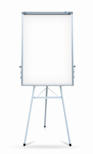 Flipchart na trójnogu z powierzchnią o właściwościach suchościeralnych i magnetycznych. Tego rodzaju przenośny flipchart stanowi doskonałe dopełnienie sal konferencyjnych, klas lekcyjnych, szkoleniowych oraz biur.