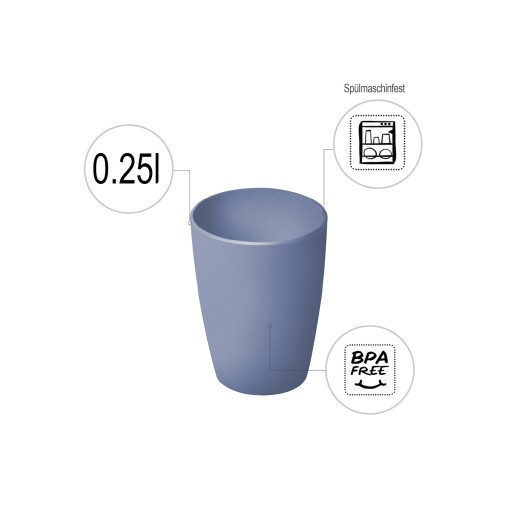 Dzięki zredukowanej konstrukcji kubek CARUBA o pojemności 0,25 litra wygląda niezwykle nowocześnie. Stabilny kubek Rotho ma wymiary 105 x 75 x 95 mm (dł. x szer. x wys.) i można go ustawiać jeden na drugim, aby zrobić wolne miejsce . Naczynie wykonane z tworzywa sztucznego dopuszczonego do kontaktu z żywnością jest idealne dla alergików. Nawet po długotrwałym użytkowaniu kubek Rotho CARUBA nie traci nic ze swojego atrakcyjnego wyglądu dzięki swojej odpornej na zarysowania powierzchni. Plastikowy kubek, który można myć w zmywarce, jest dostępny z w wersji uchwytem lub bez.