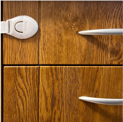 Uniemożliwia swobodne otwieranie szafek i szuflad.